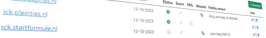 Voor elke linkpartner wordt het verloop van de status bijgehouden. Mocht een backlink niet meer bestaan dan kun je analyseren vanaf wanneer.